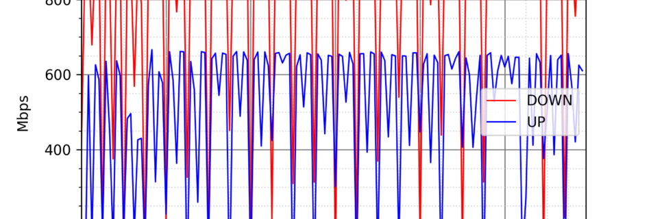 NURO ONEの速度の時間帯による変化を確認するため、プログラムを作って実際に細かく計測しています。測定方法はSpeedtestのCUIコマンドをcronで10分毎に実行して計測しています。エリアは東京、speedte …