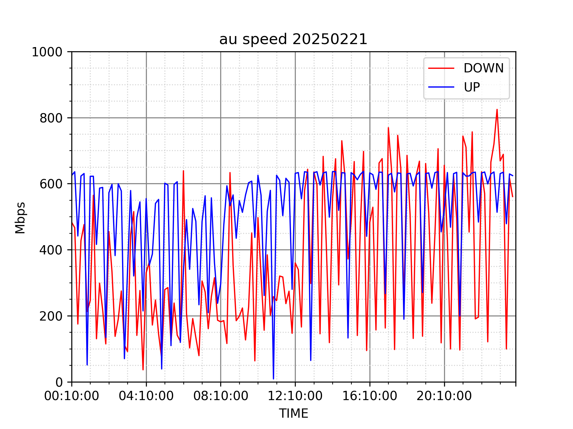 測定方法はSpeedtestのCUIコマンドをcronで10分毎に実行して計測しています。