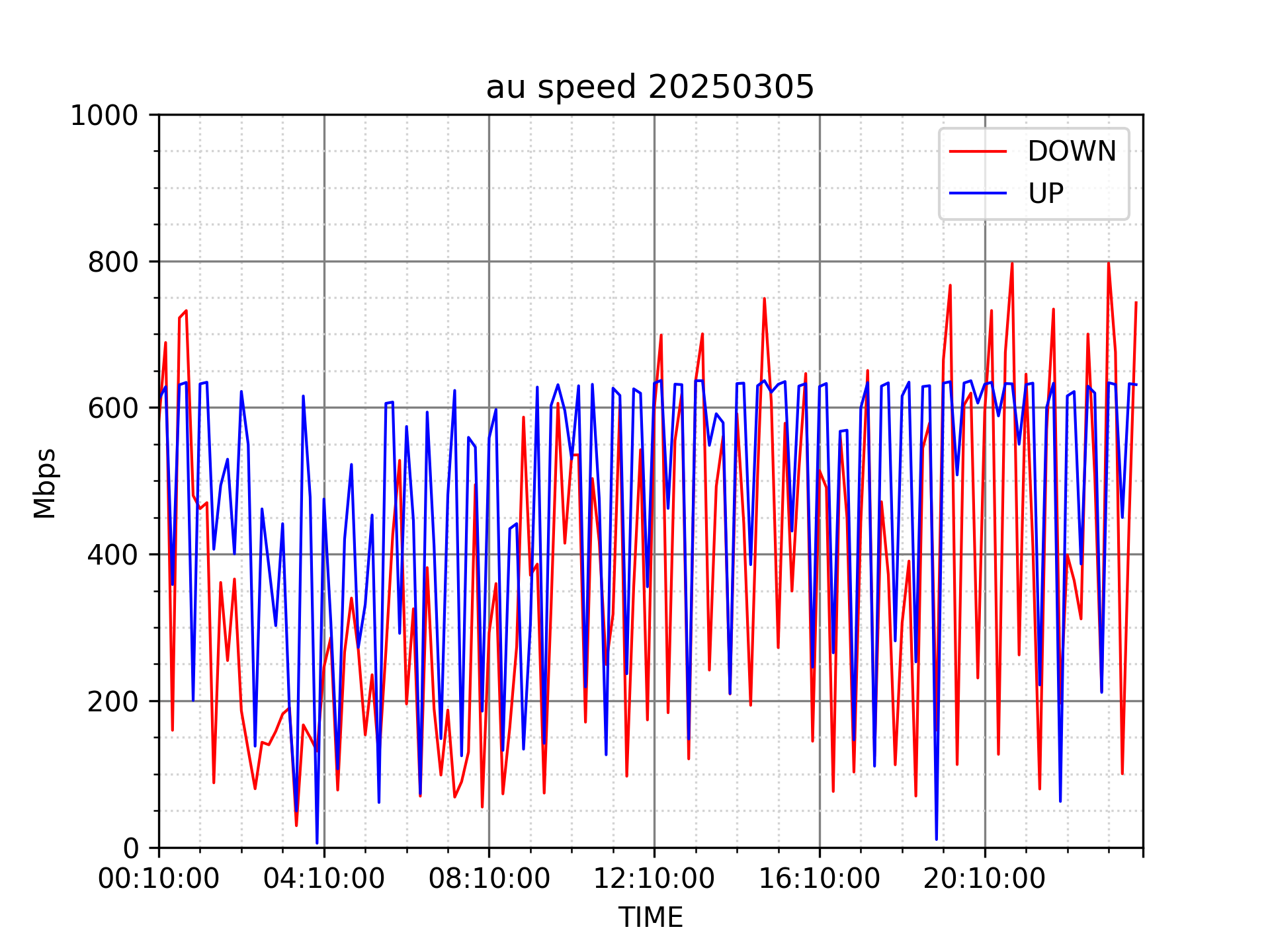 測定方法はSpeedtestのCUIコマンドをcronで10分毎に実行して計測しています。