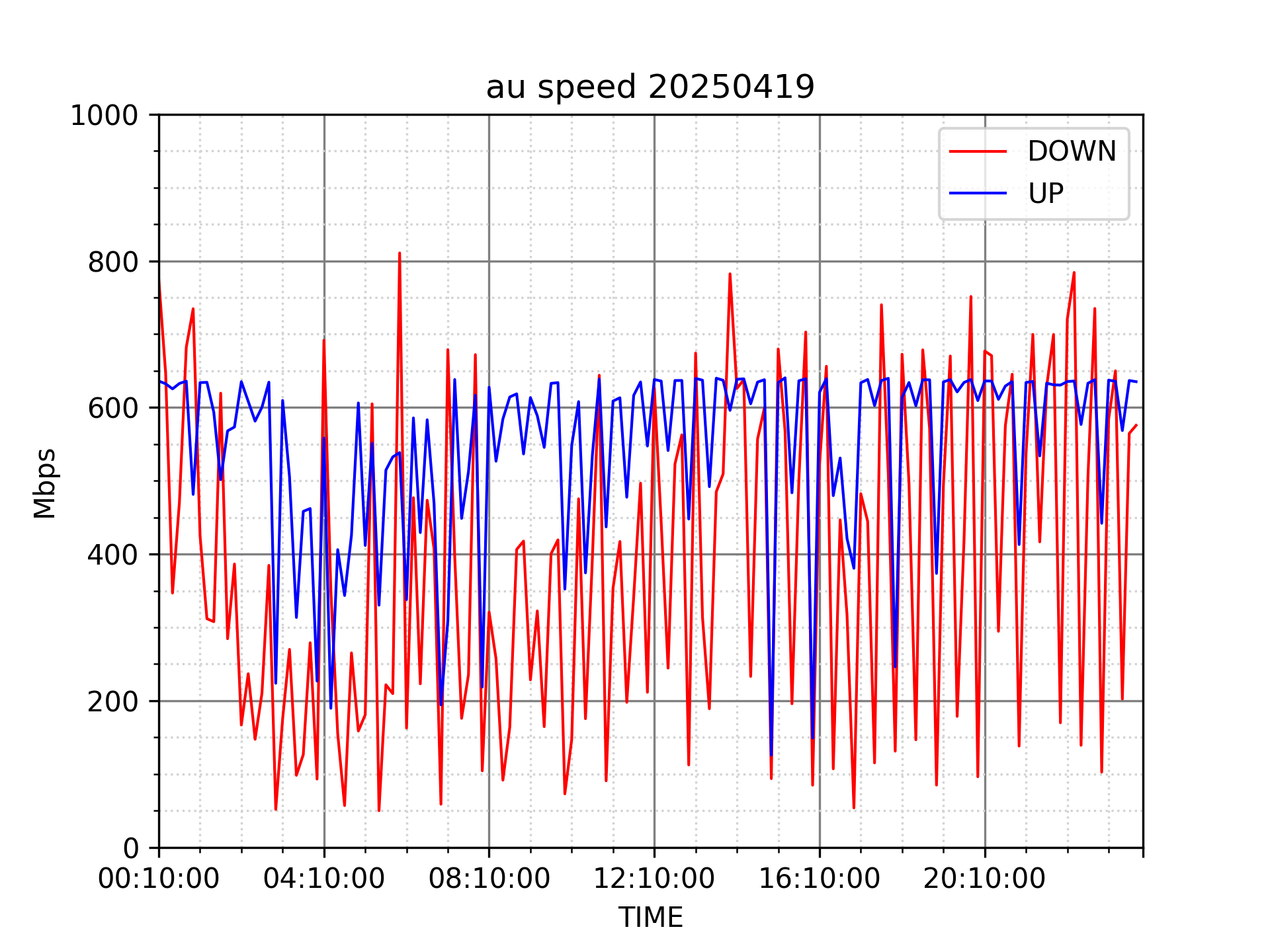 測定方法はSpeedtestのCUIコマンドをcronで10分毎に実行して計測しています。