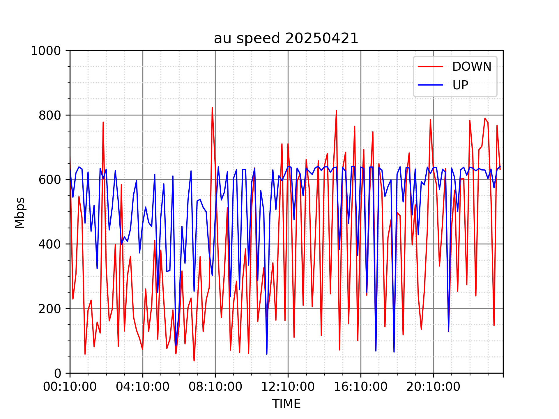 au光の速度の時間帯による変化を確認するため、プログラムを作って実際に細かく計測しています。