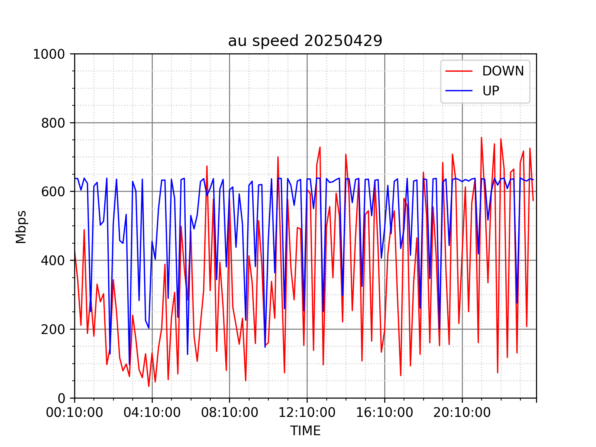 測定方法はSpeedtestのCUIコマンドをcronで10分毎に実行して計測しています。