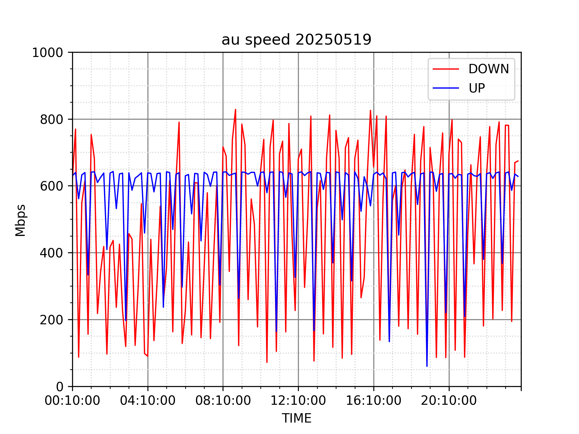 au光の速度の時間帯による変化を確認するため、プログラムを作って実際に細かく計測しています。