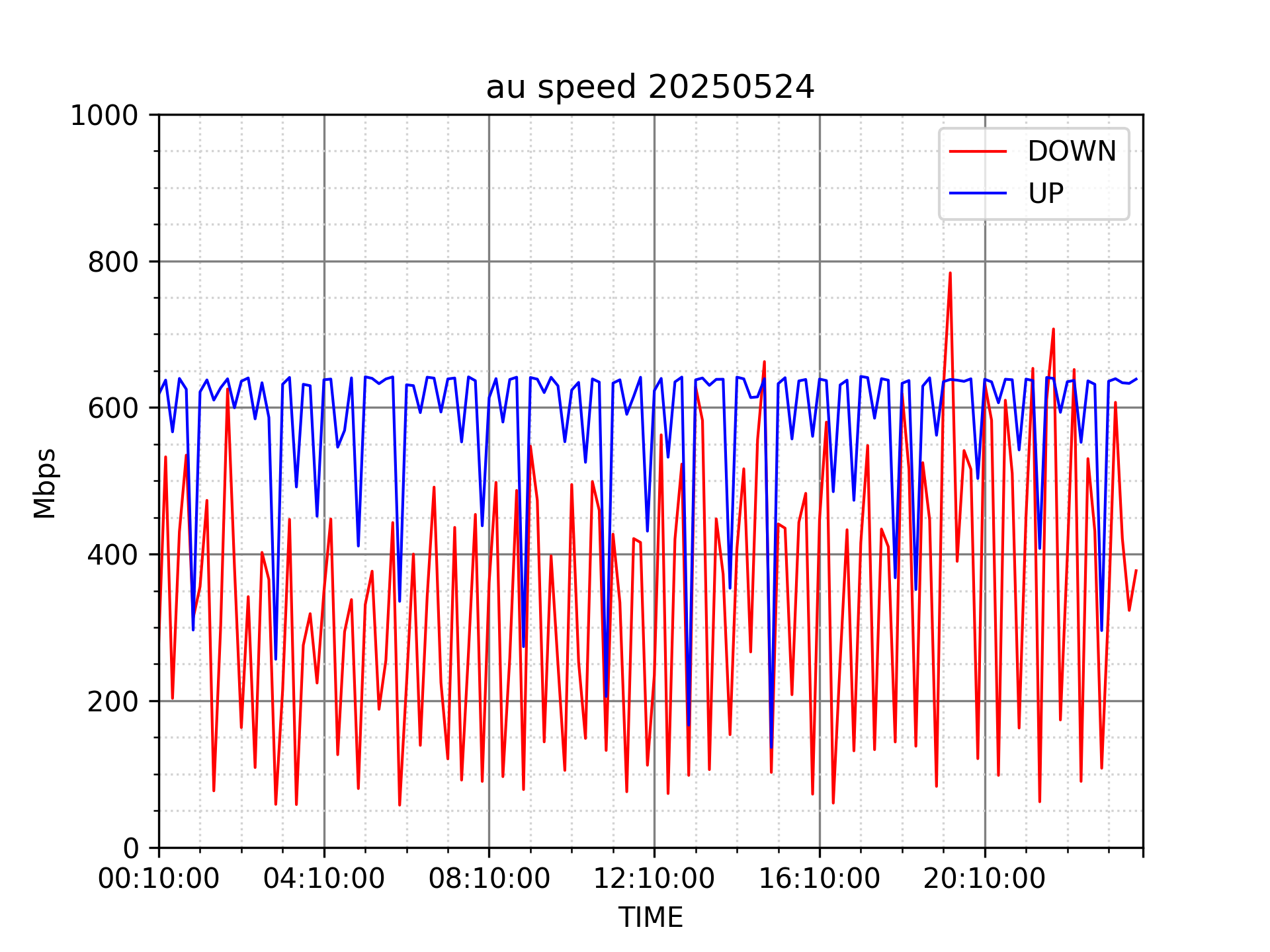 au光の速度の時間帯による変化を確認するため、プログラムを作って実際に細かく計測しています。