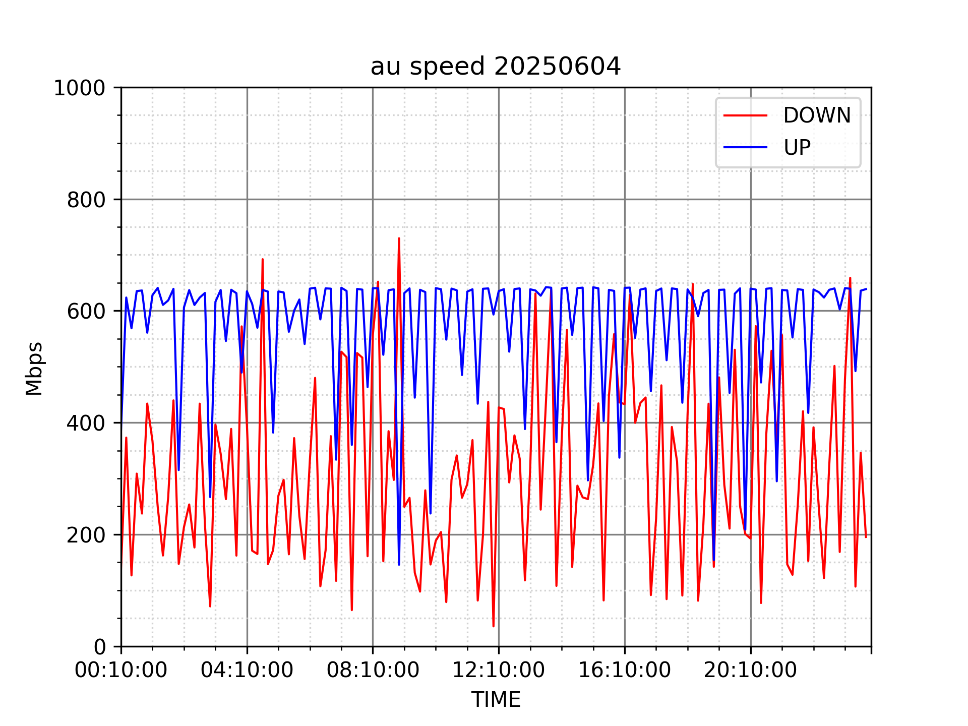 測定方法はSpeedtestのCUIコマンドをcronで10分毎に実行して計測しています。