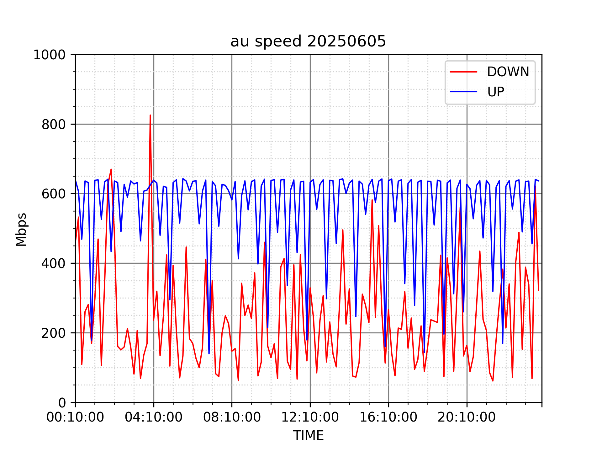 測定方法はSpeedtestのCUIコマンドをcronで10分毎に実行して計測しています。
