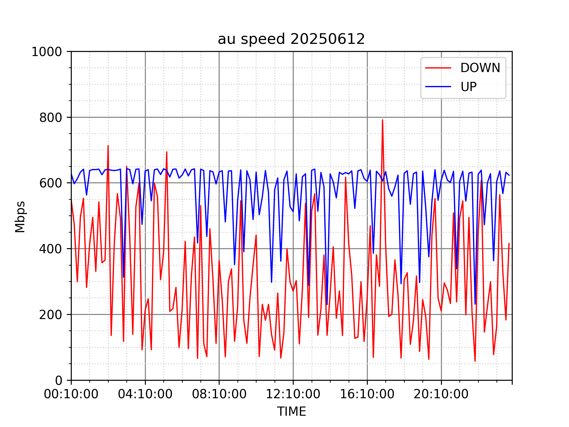 測定方法はSpeedtestのCUIコマンドをcronで10分毎に実行して計測しています。
