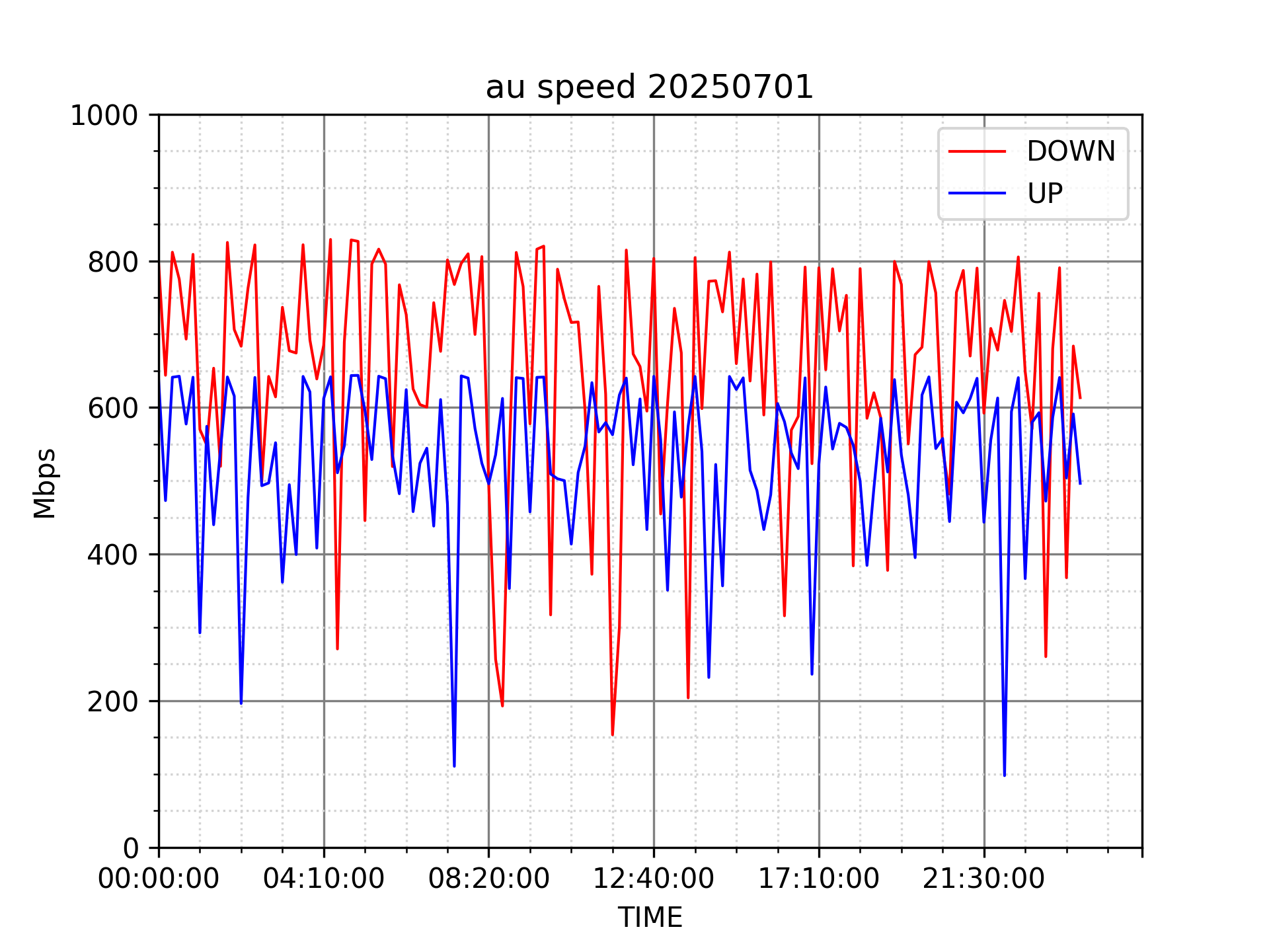 測定方法はSpeedtestのCUIコマンドをcronで10分毎に実行して計測しています。