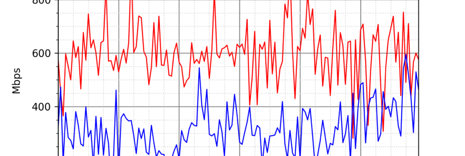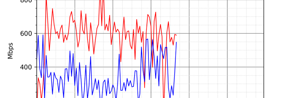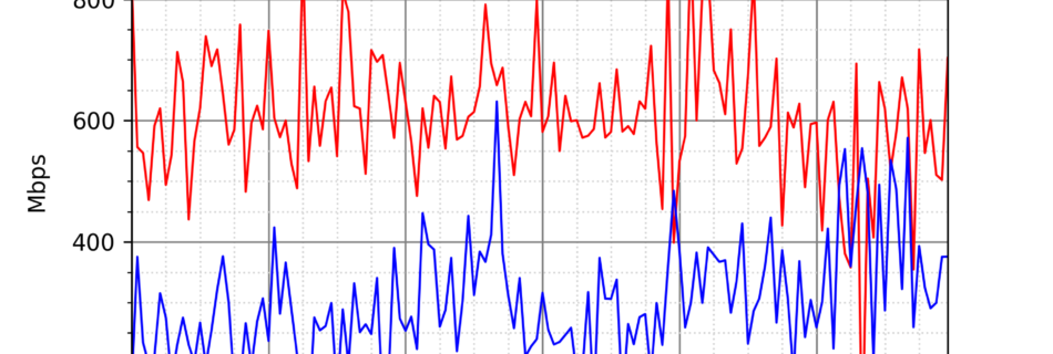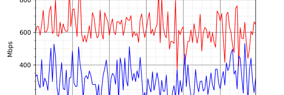 NURO光の速度の時間帯による変化を確認するため、プログラムを作って実際に細かく計測しています。測定方法はSpeedtestのCUIコマンドをcronで10分毎に実行して計測しています。エリアは東京となっています。