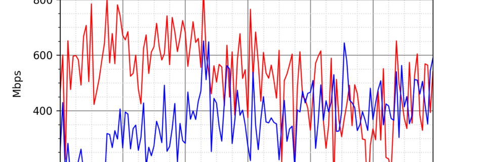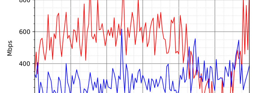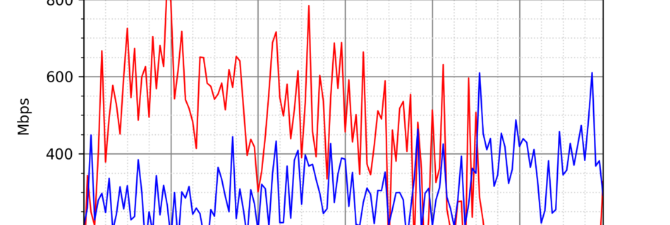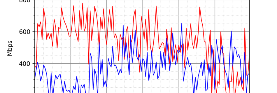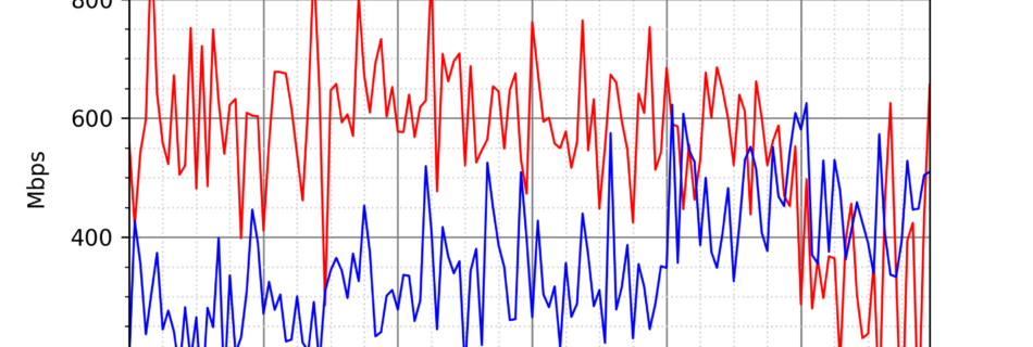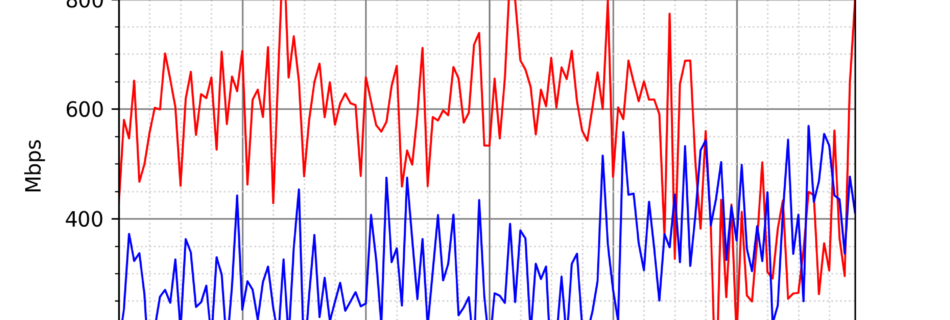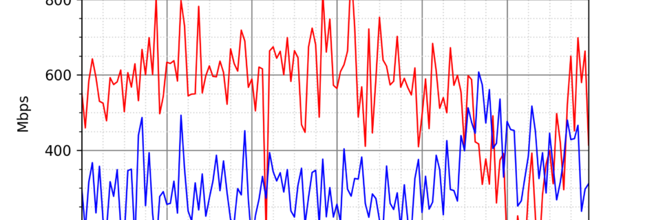 NURO光の速度の時間帯による変化を確認するため、プログラムを作って実際に細かく計測しています。測定方法はSpeedtestのCUIコマンドをcronで10分毎に実行して計測しています。エリアは東京となっています。