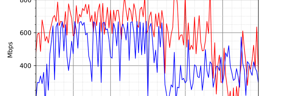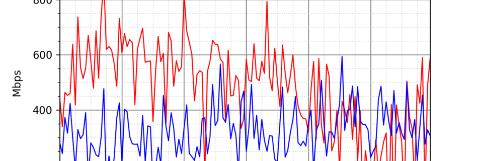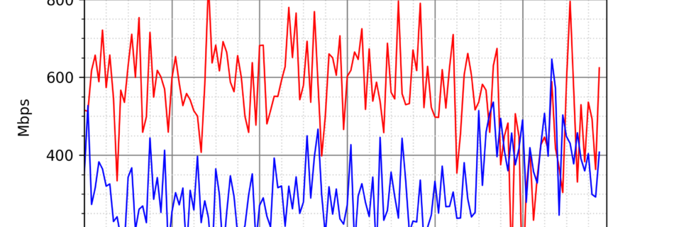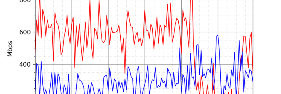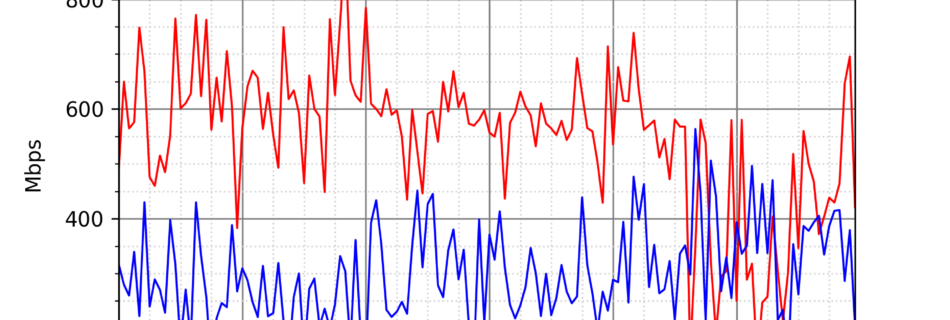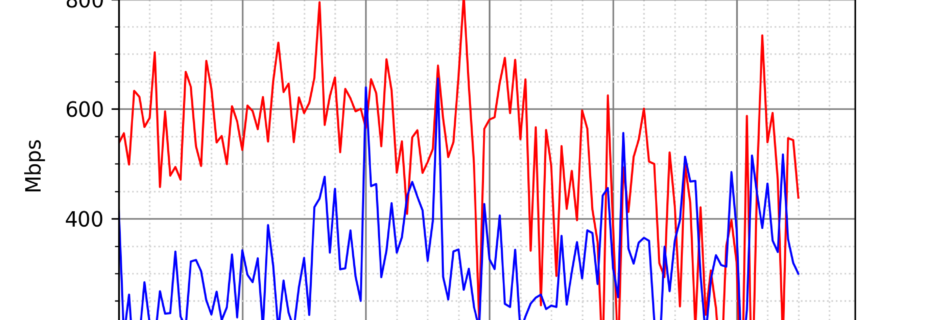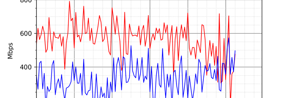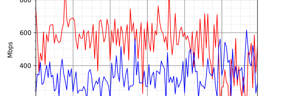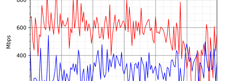 NURO光の速度の時間帯による変化を確認するため、プログラムを作って実際に細かく計測しています。測定方法はSpeedtestのCUIコマンドをcronで10分毎に実行して計測しています。エリアは東京となっています。
