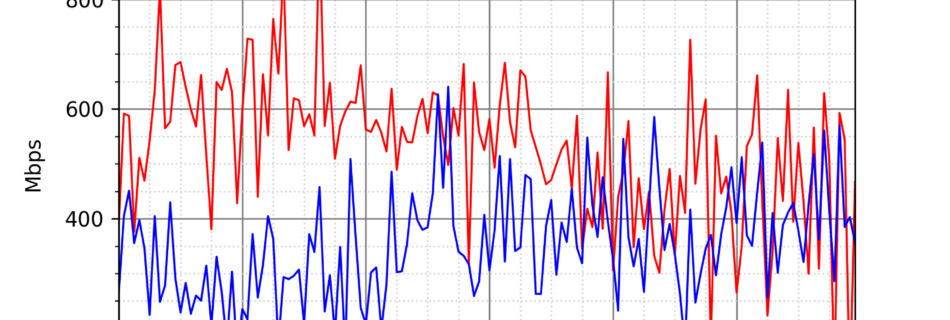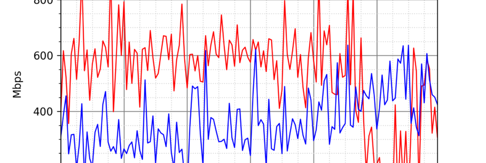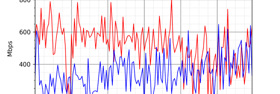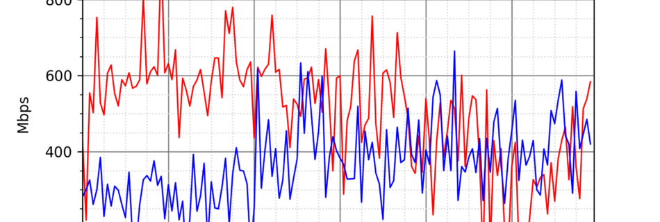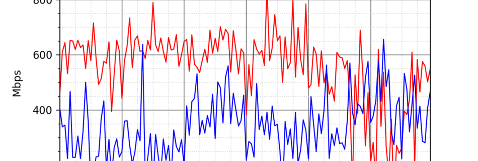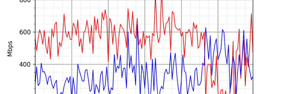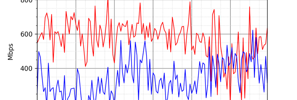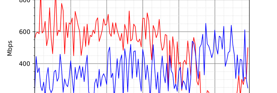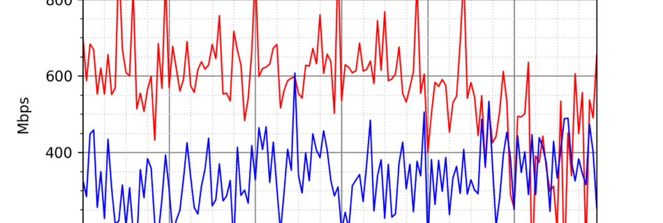 NURO光の速度の時間帯による変化を確認するため、プログラムを作って実際に細かく計測しています。測定方法はSpeedtestのCUIコマンドをcronで10分毎に実行して計測しています。エリアは東京となっています。
