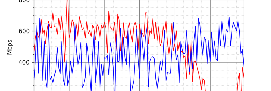 NURO光の速度の時間帯による変化を確認するため、プログラムを作って実際に細かく計測しています。測定方法はSpeedtestのCUIコマンドをcronで10分毎に実行して計測しています。エリアは東京となっています。