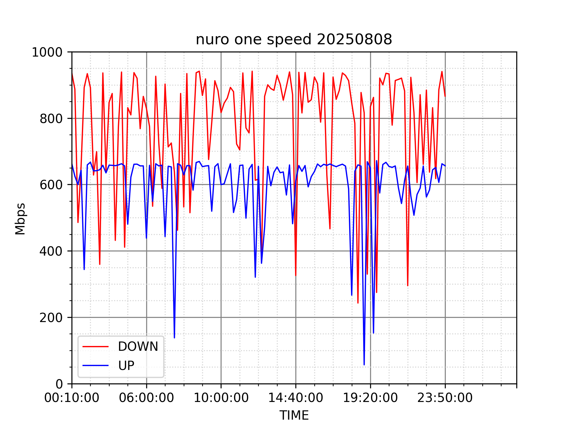 測定方法はSpeedtestのCUIコマンドをcronで10分毎に実行して計測しています。