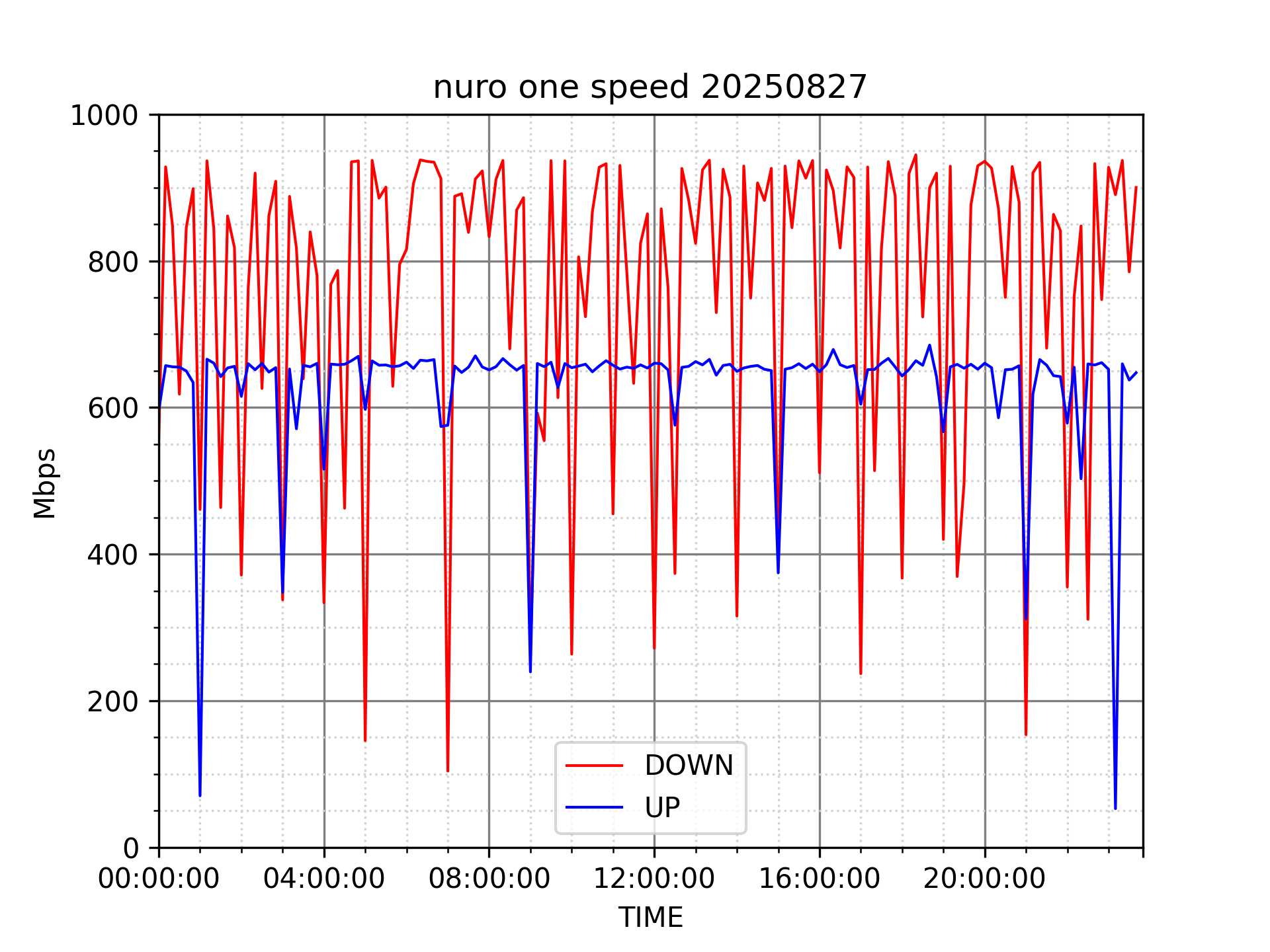 NURO ONEの速度の時間帯による変化を確認するため、プログラムを作って実際に細かく計測しています。