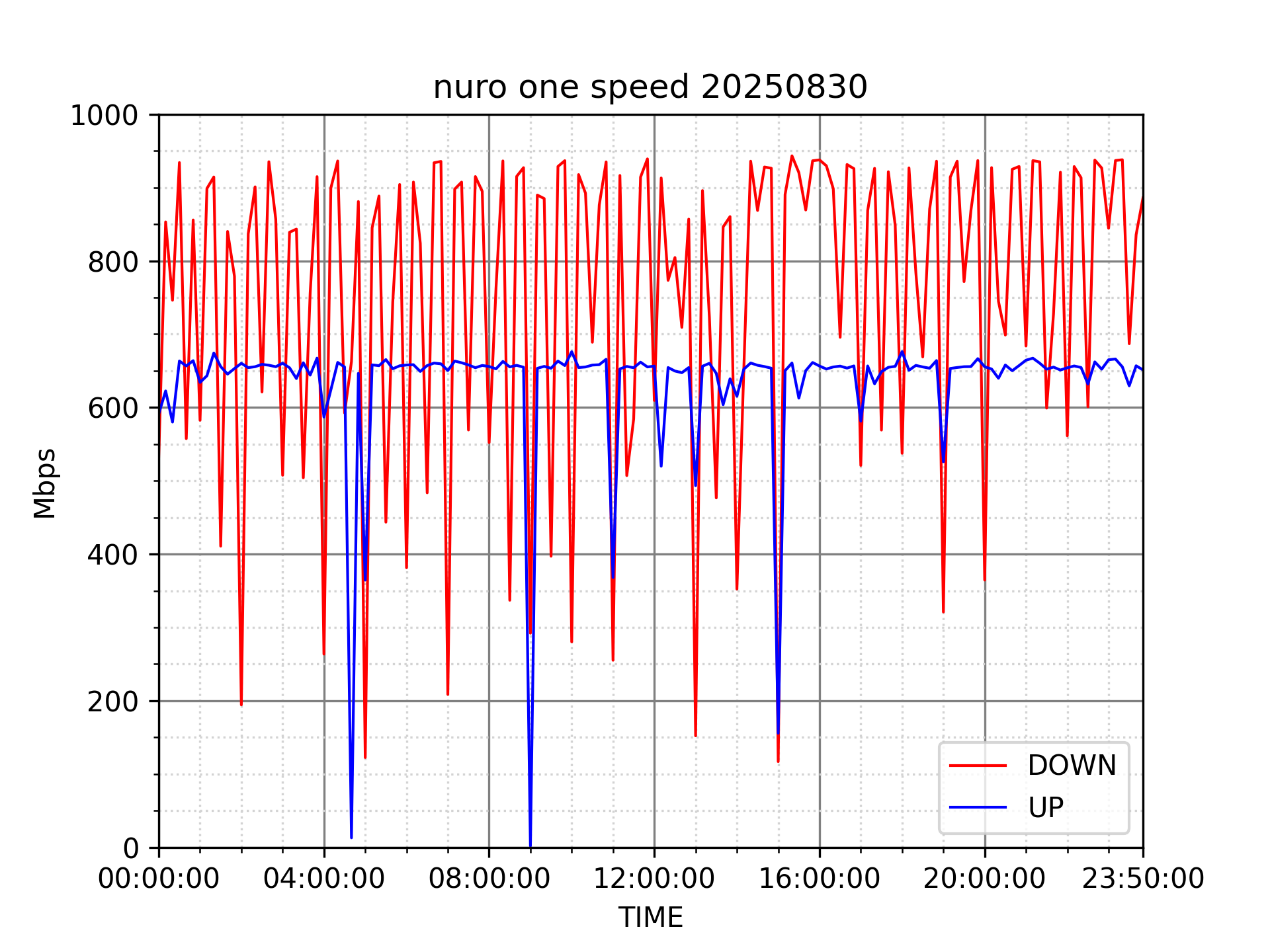 NURO ONEの速度の時間帯による変化を確認するため、プログラムを作って実際に細かく計測しています。