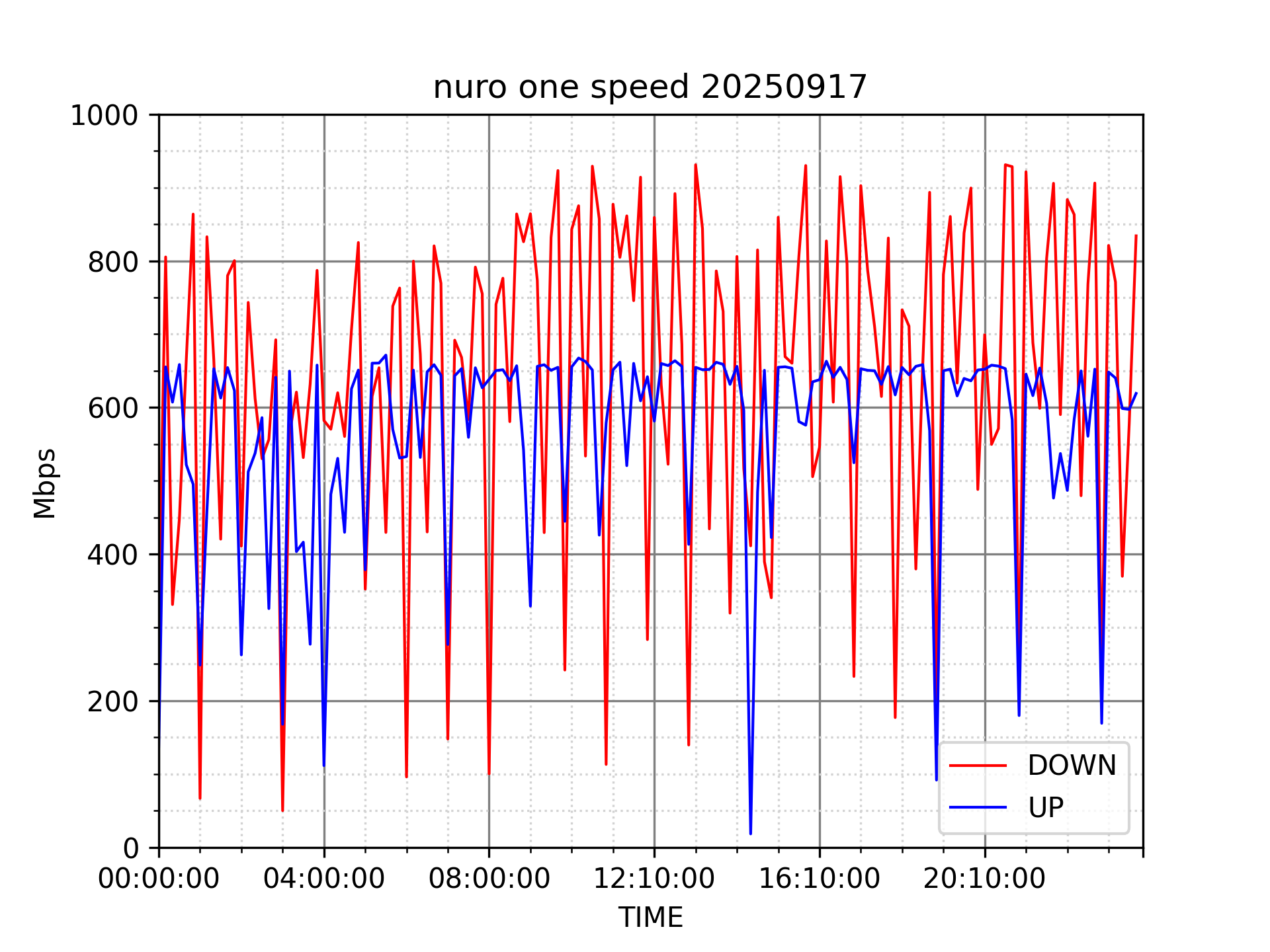 NURO ONEの速度の時間帯による変化を確認するため、プログラムを作って実際に細かく計測しています。