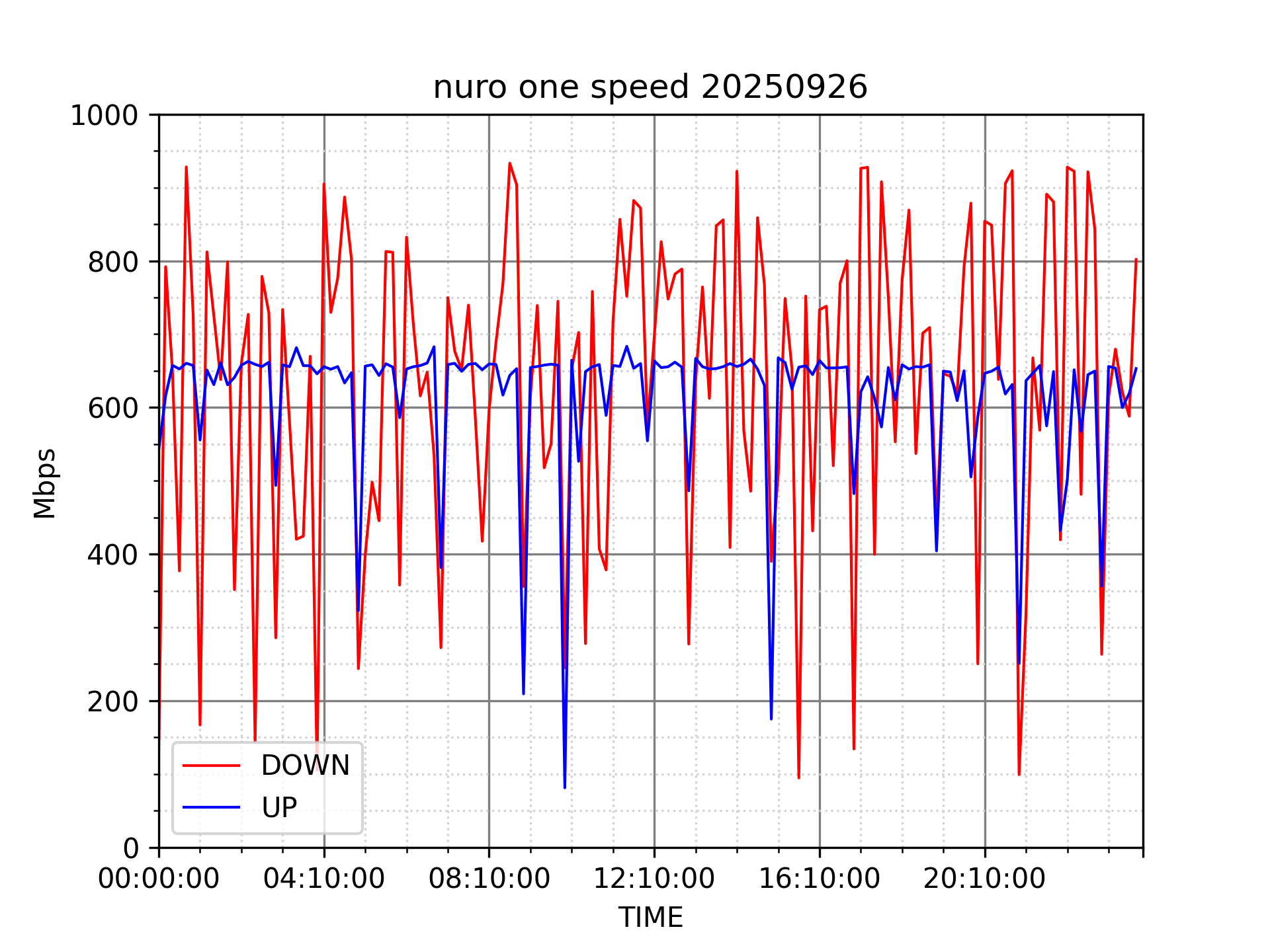 NURO ONEの速度の時間帯による変化を確認するため、プログラムを作って実際に細かく計測しています。
