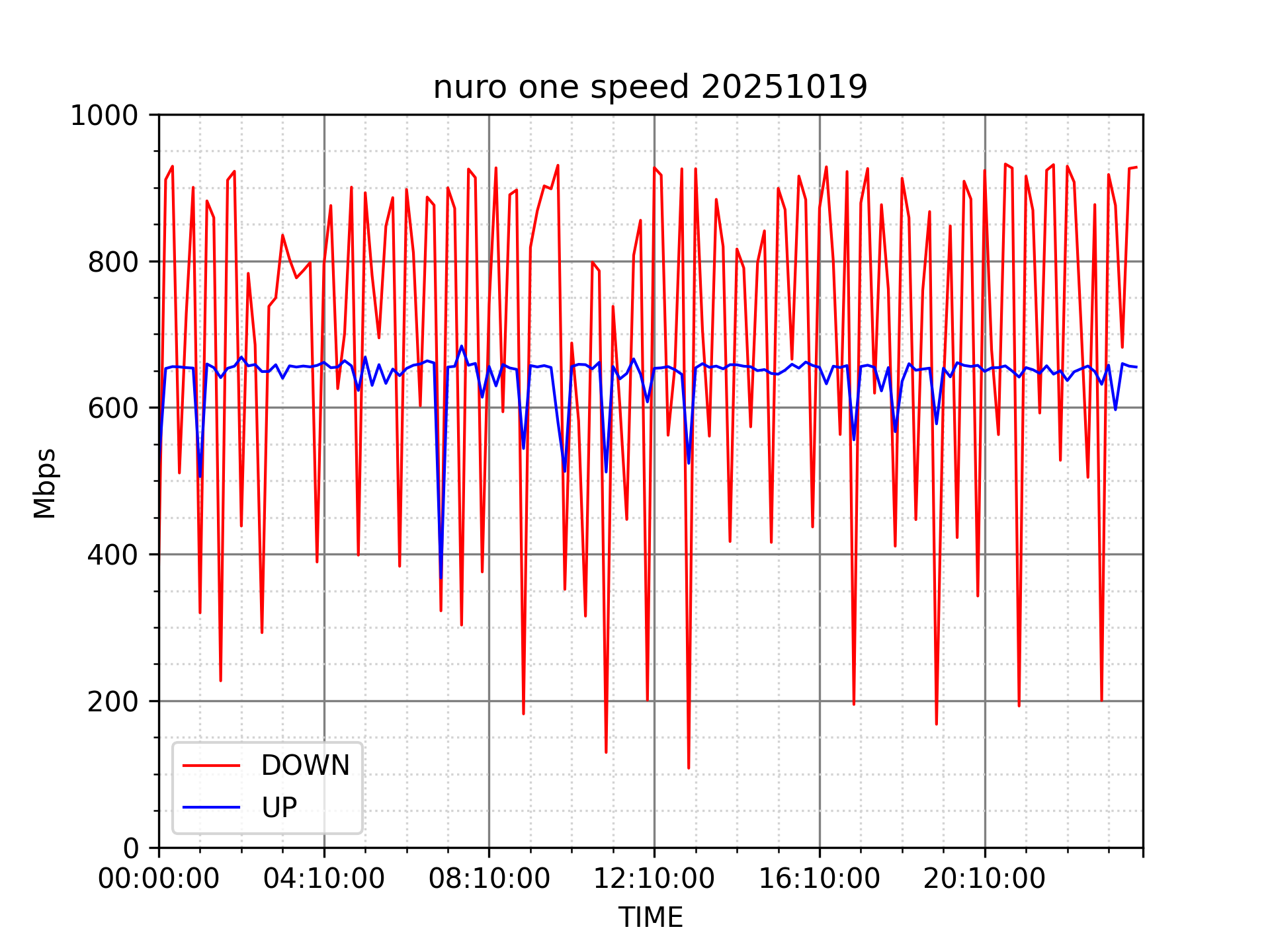 NURO ONEの速度の時間帯による変化を確認するため、プログラムを作って実際に細かく計測しています。