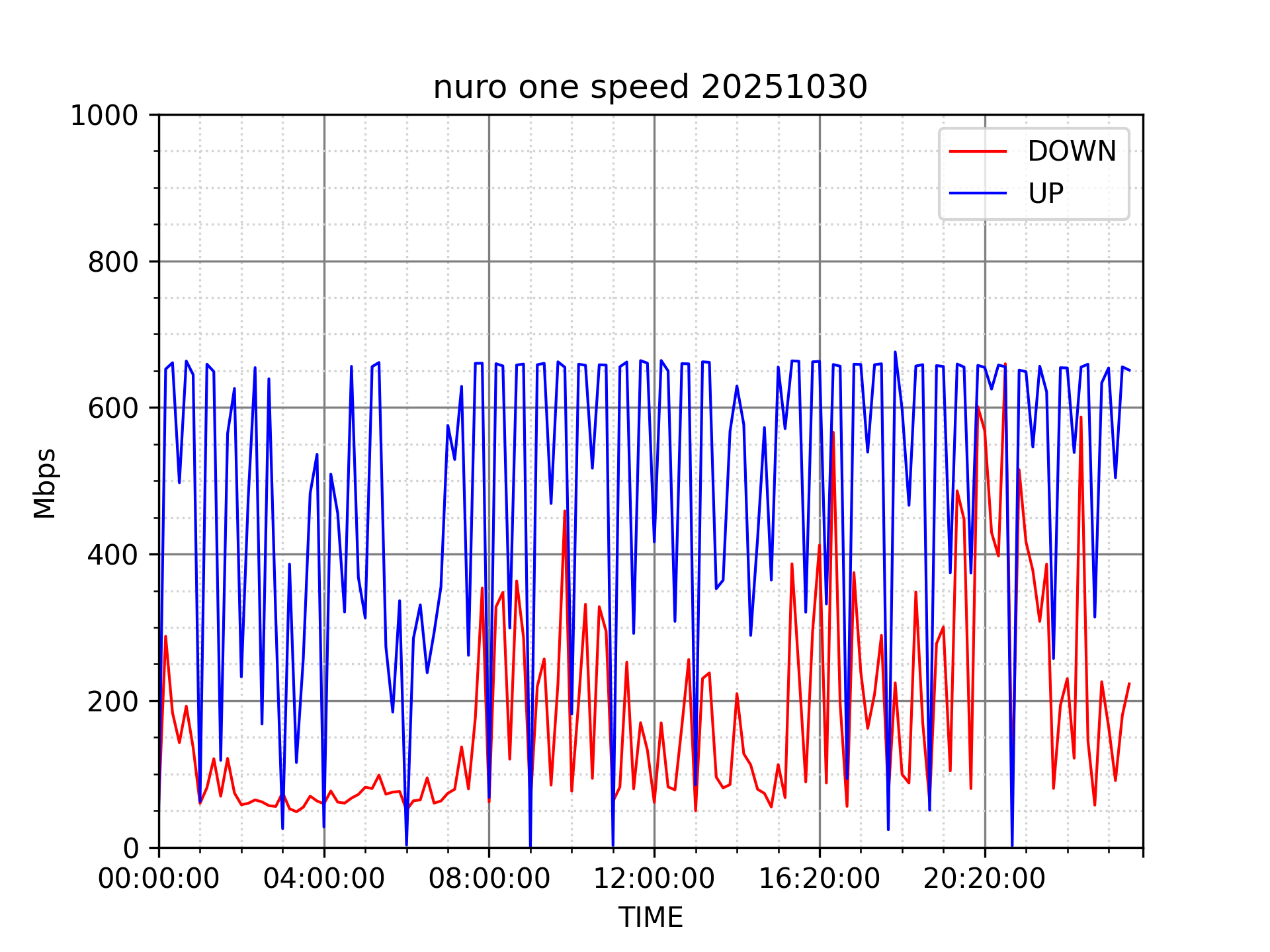 NURO ONEの速度の時間帯による変化を確認するため、プログラムを作って実際に細かく計測しています。