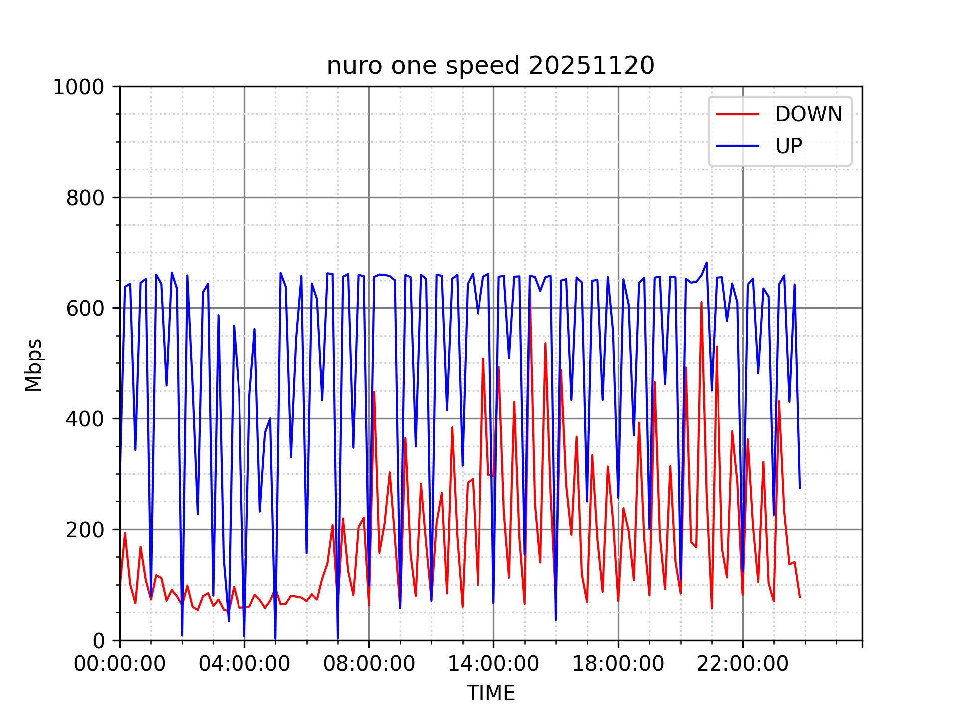 NURO ONEの速度の時間帯による変化を確認するため、プログラムを作って実際に細かく計測しています。