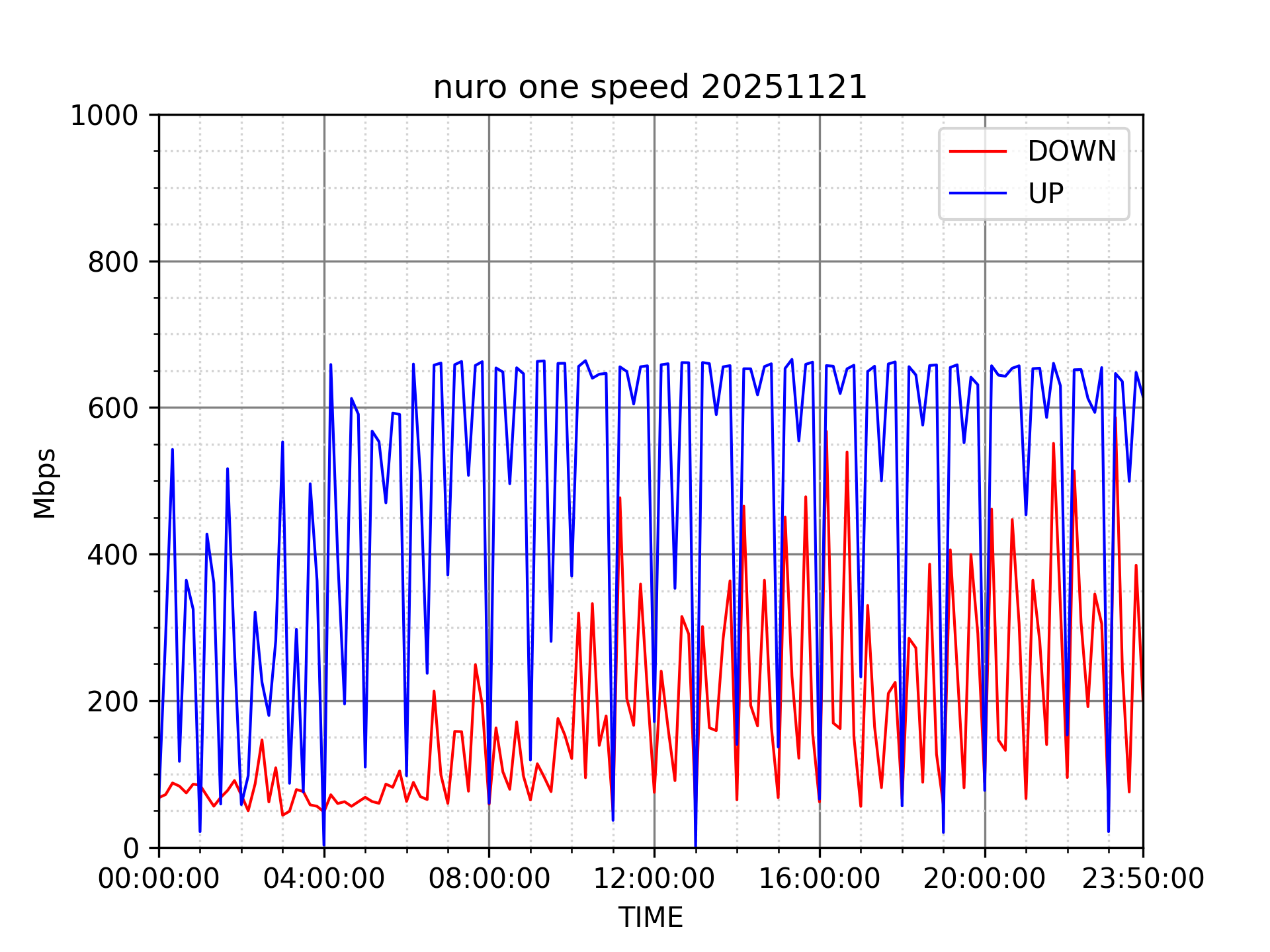 NURO ONEの速度の時間帯による変化を確認するため、プログラムを作って実際に細かく計測しています。