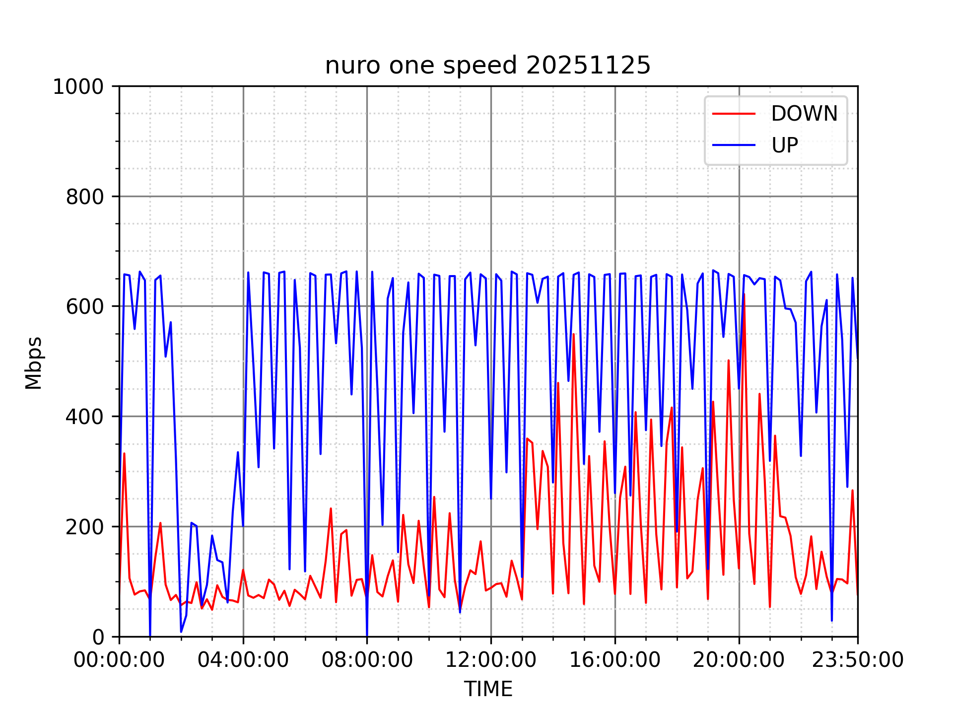NURO ONEの速度の時間帯による変化を確認するため、プログラムを作って実際に細かく計測しています。