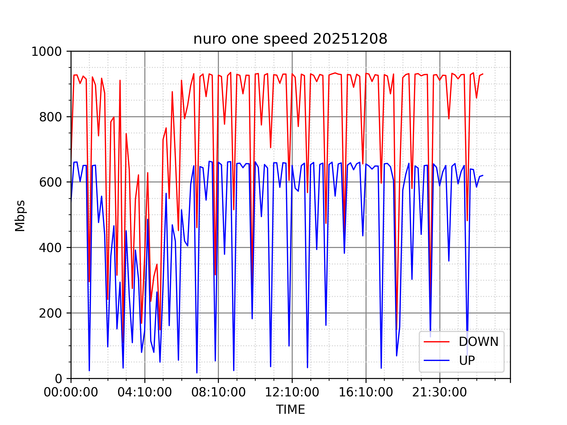 NURO ONEの速度の時間帯による変化を確認するため、プログラムを作って実際に細かく計測しています。
