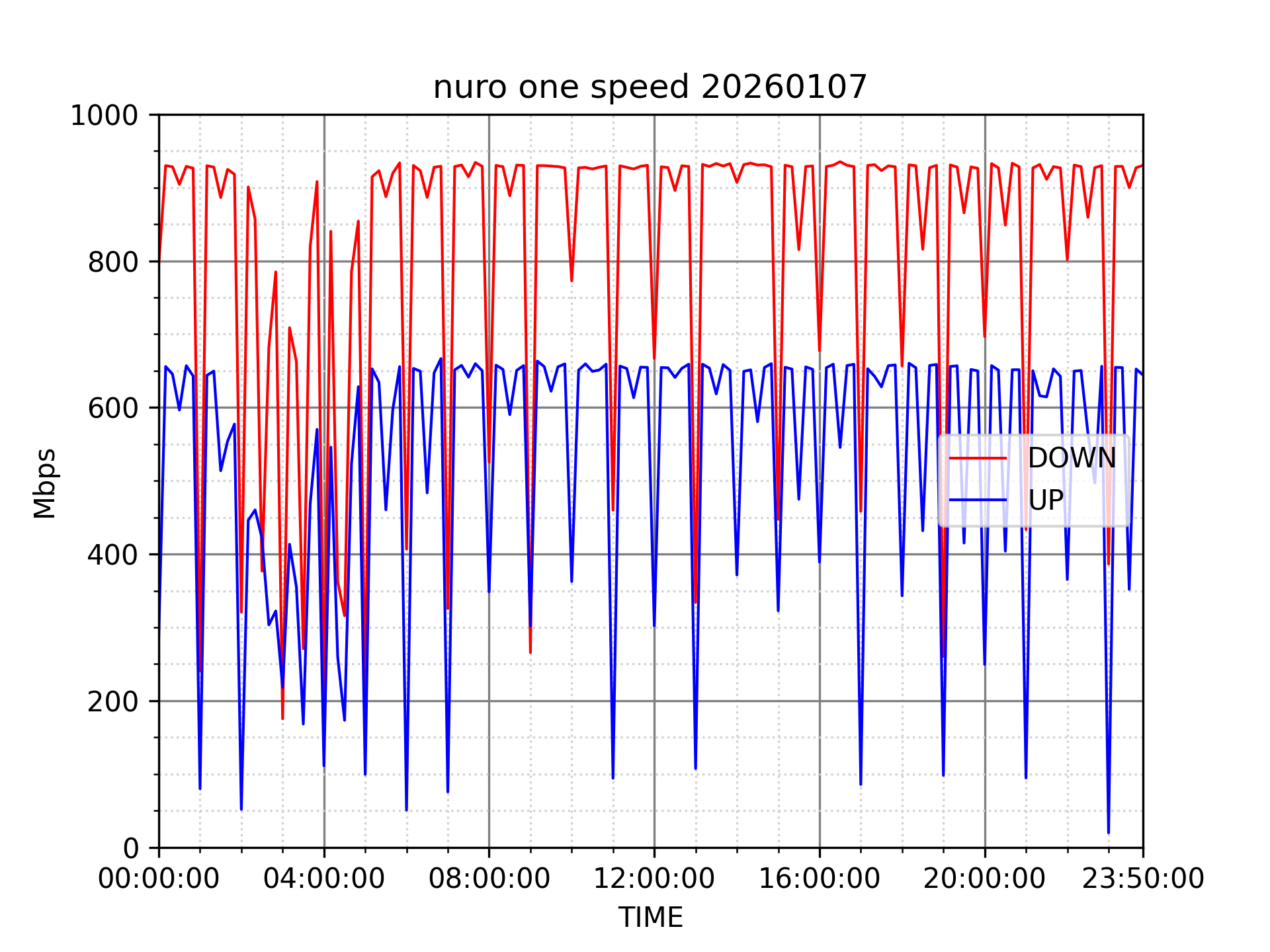 NURO ONEの速度の時間帯による変化を確認するため、プログラムを作って実際に細かく計測しています。