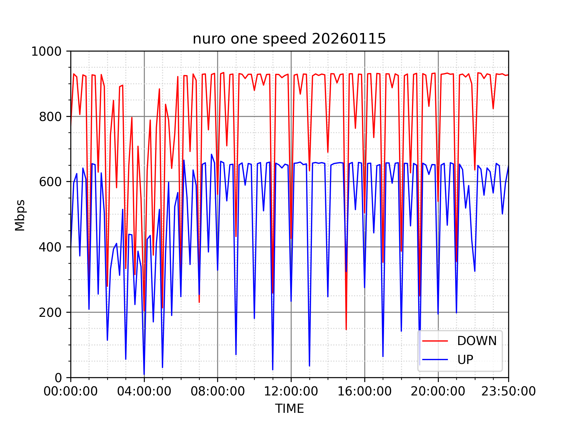 NURO ONEの速度の時間帯による変化を確認するため、プログラムを作って実際に細かく計測しています。