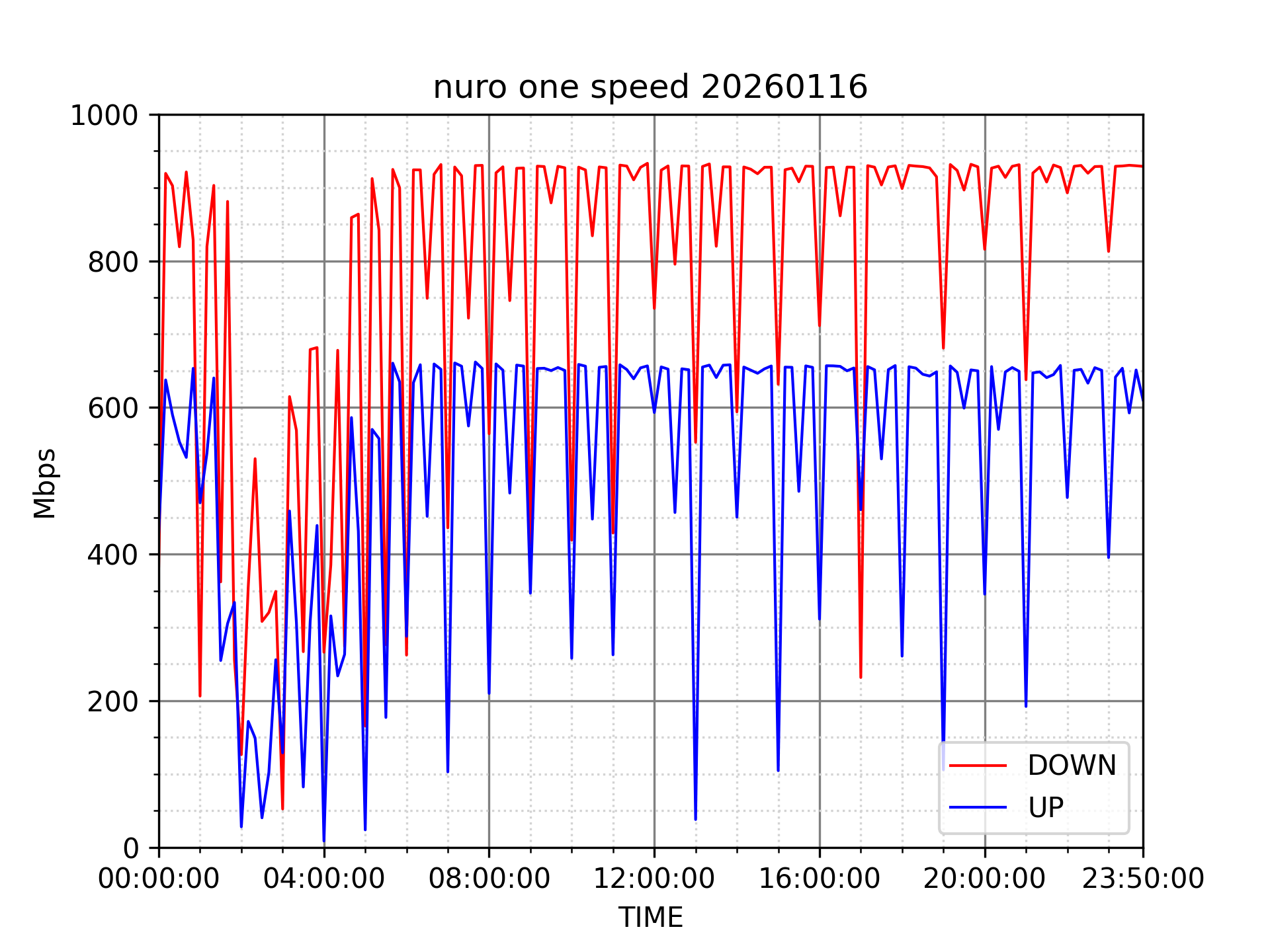 NURO ONEの速度の時間帯による変化を確認するため、プログラムを作って実際に細かく計測しています。