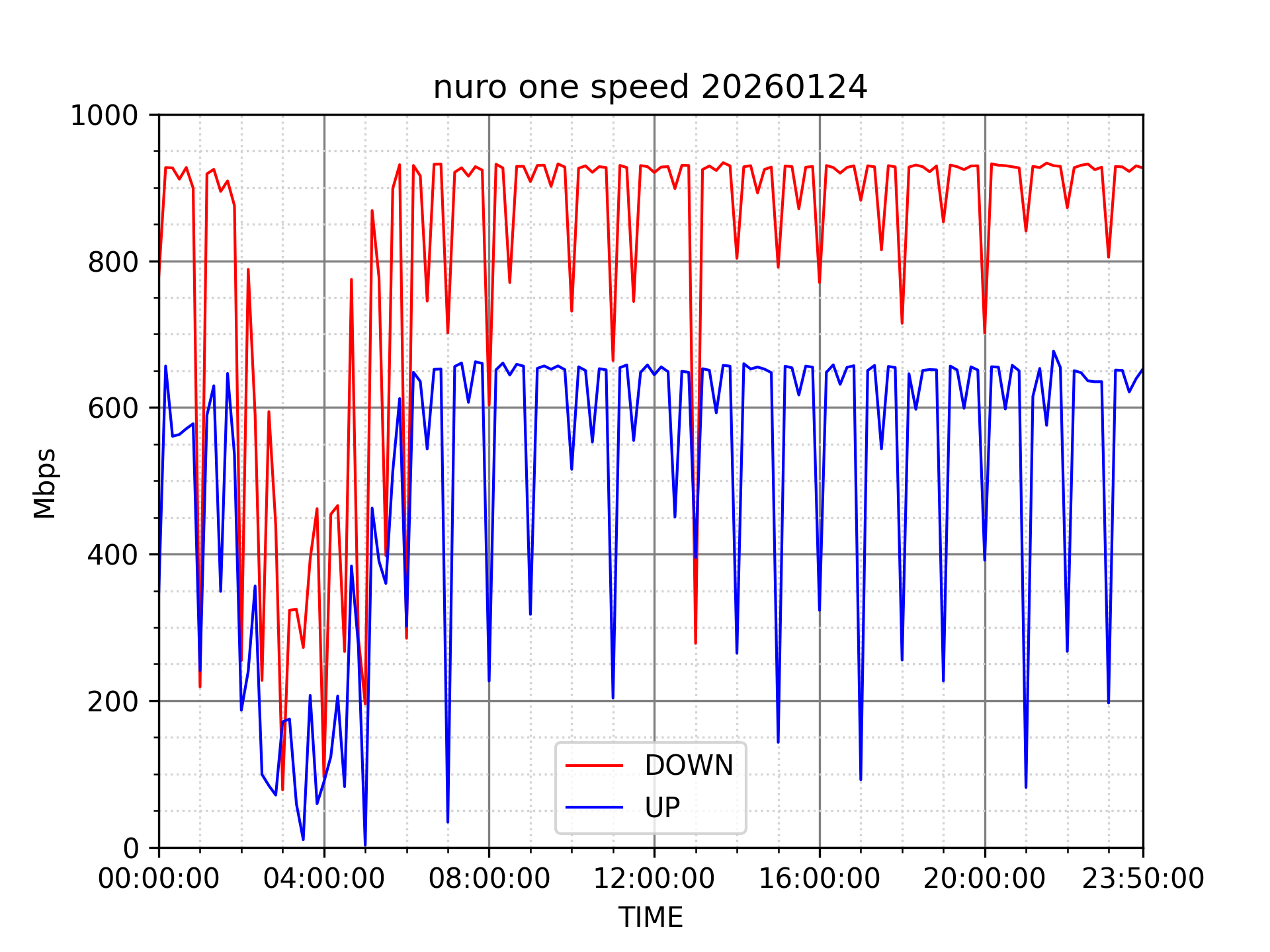 NURO ONEの速度の時間帯による変化を確認するため、プログラムを作って実際に細かく計測しています。