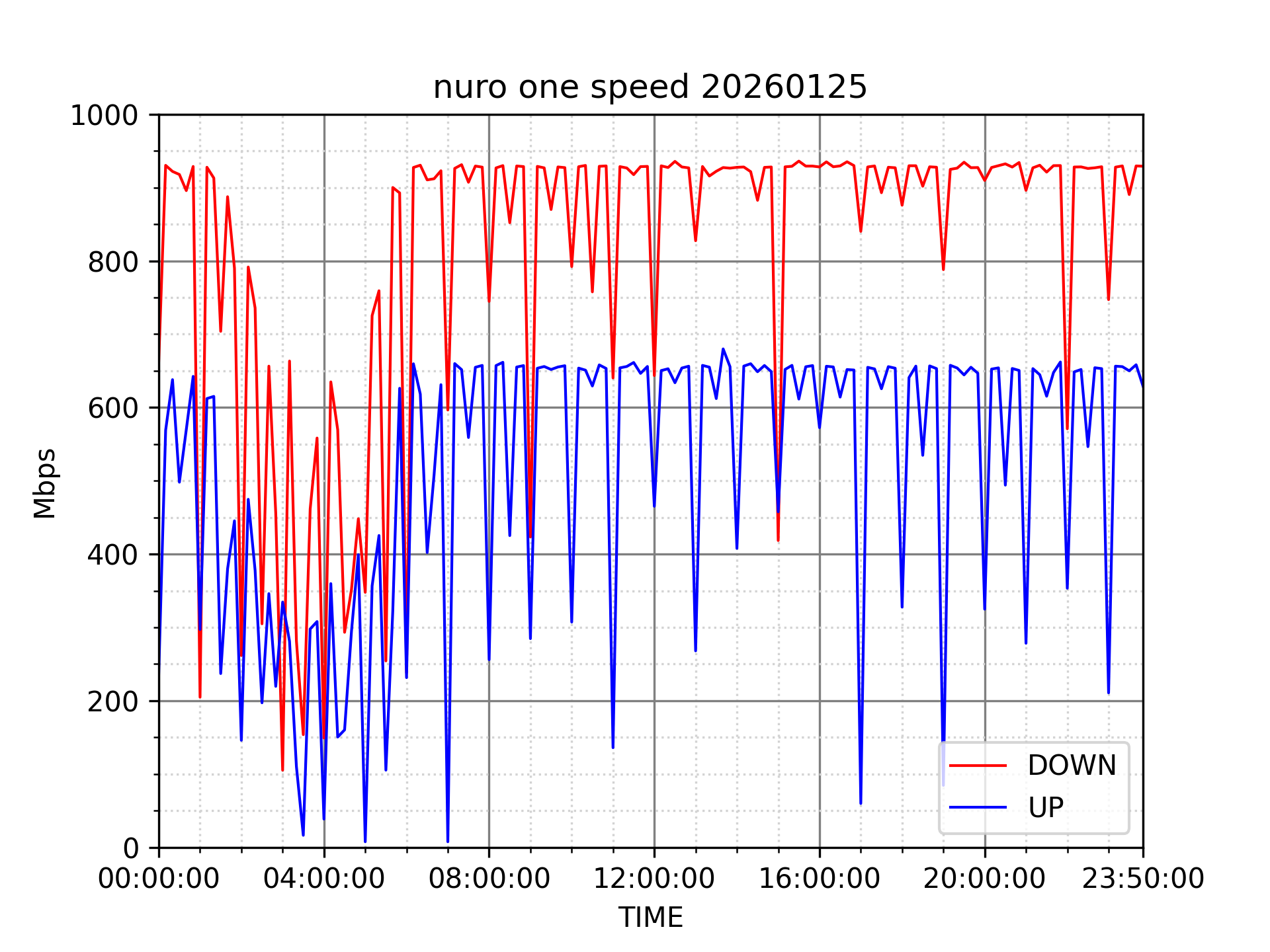 NURO ONEの速度の時間帯による変化を確認するため、プログラムを作って実際に細かく計測しています。