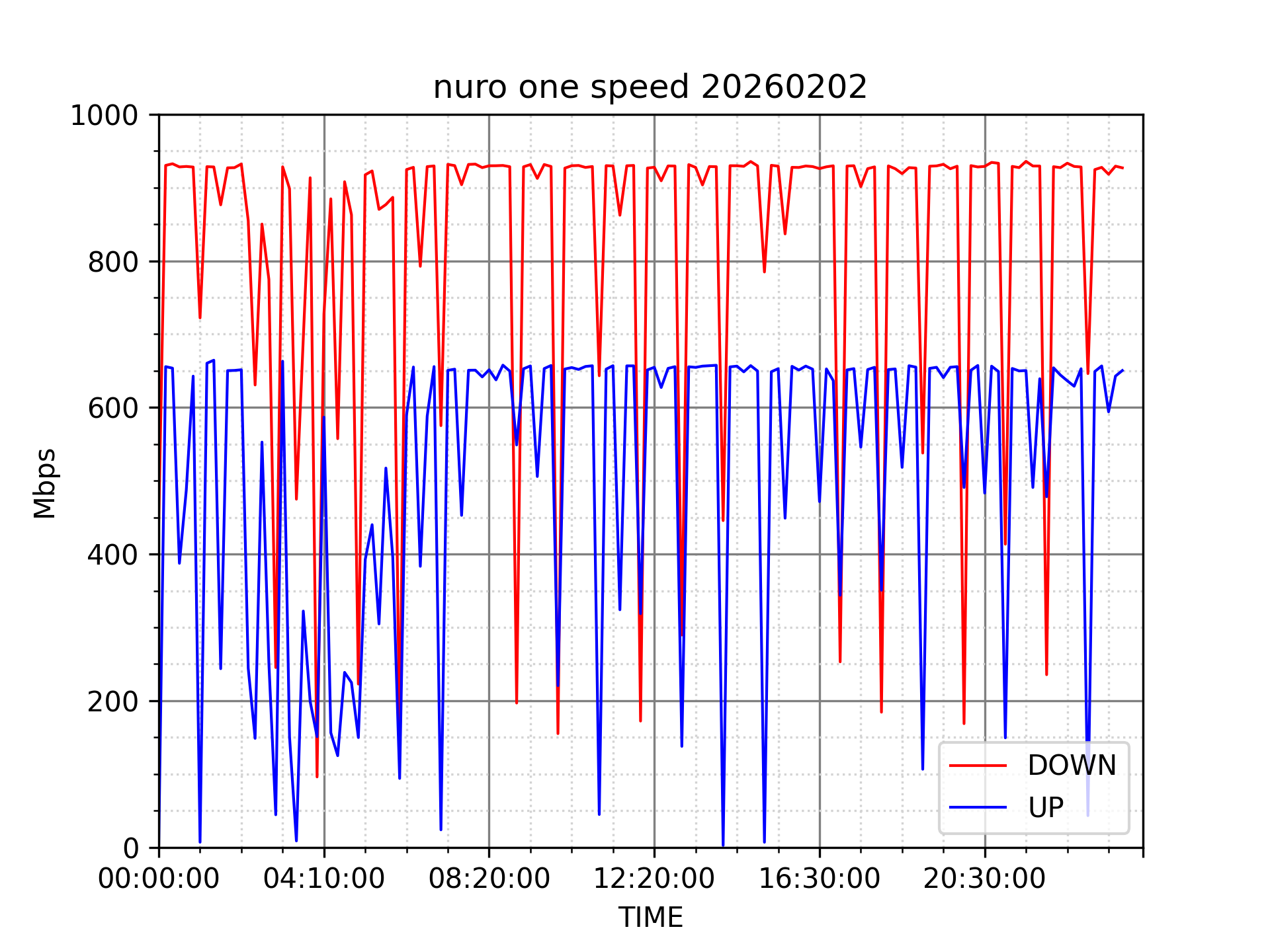 NURO ONEの速度の時間帯による変化を確認するため、プログラムを作って実際に細かく計測しています。