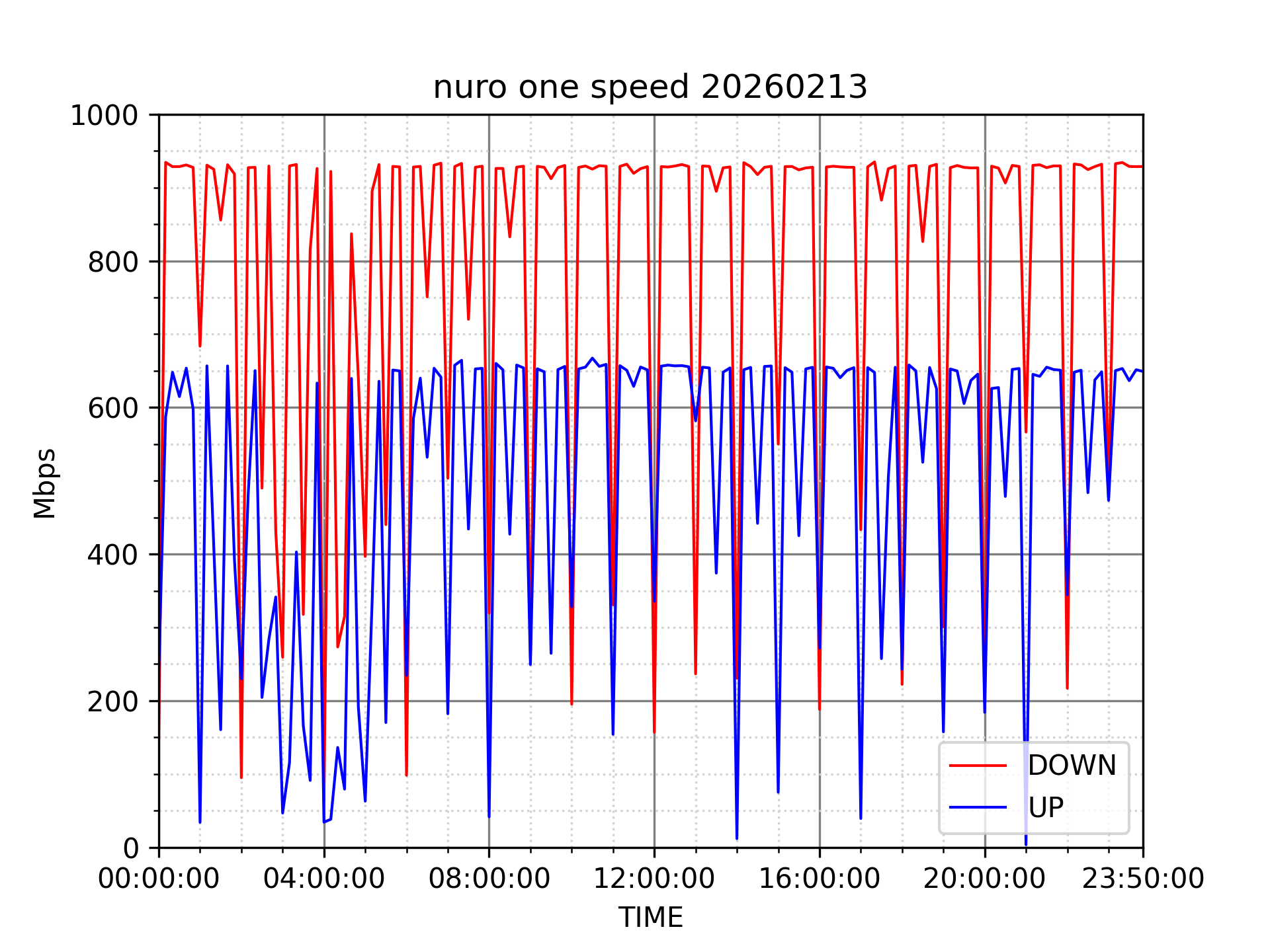 NURO ONEの速度の時間帯による変化を確認するため、プログラムを作って実際に細かく計測しています。