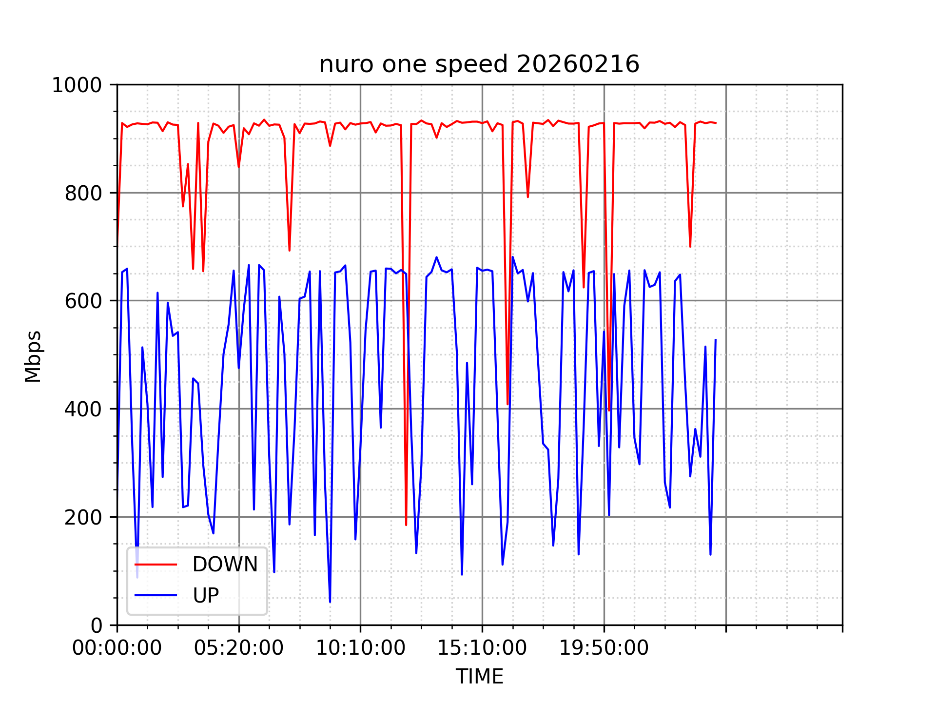 NURO ONEの速度の時間帯による変化を確認するため、プログラムを作って実際に細かく計測しています。