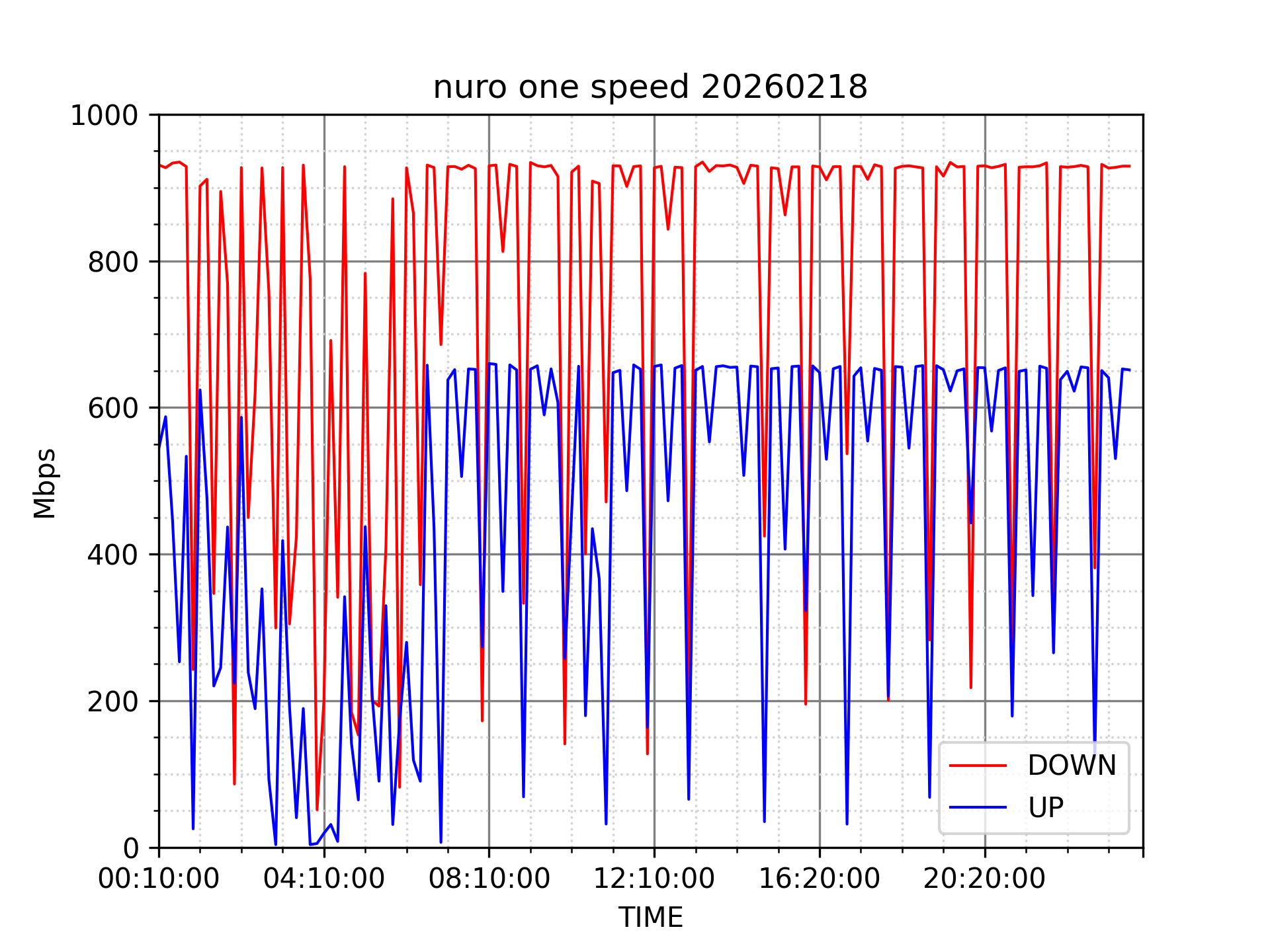 NURO ONEの速度の時間帯による変化を確認するため、プログラムを作って実際に細かく計測しています。