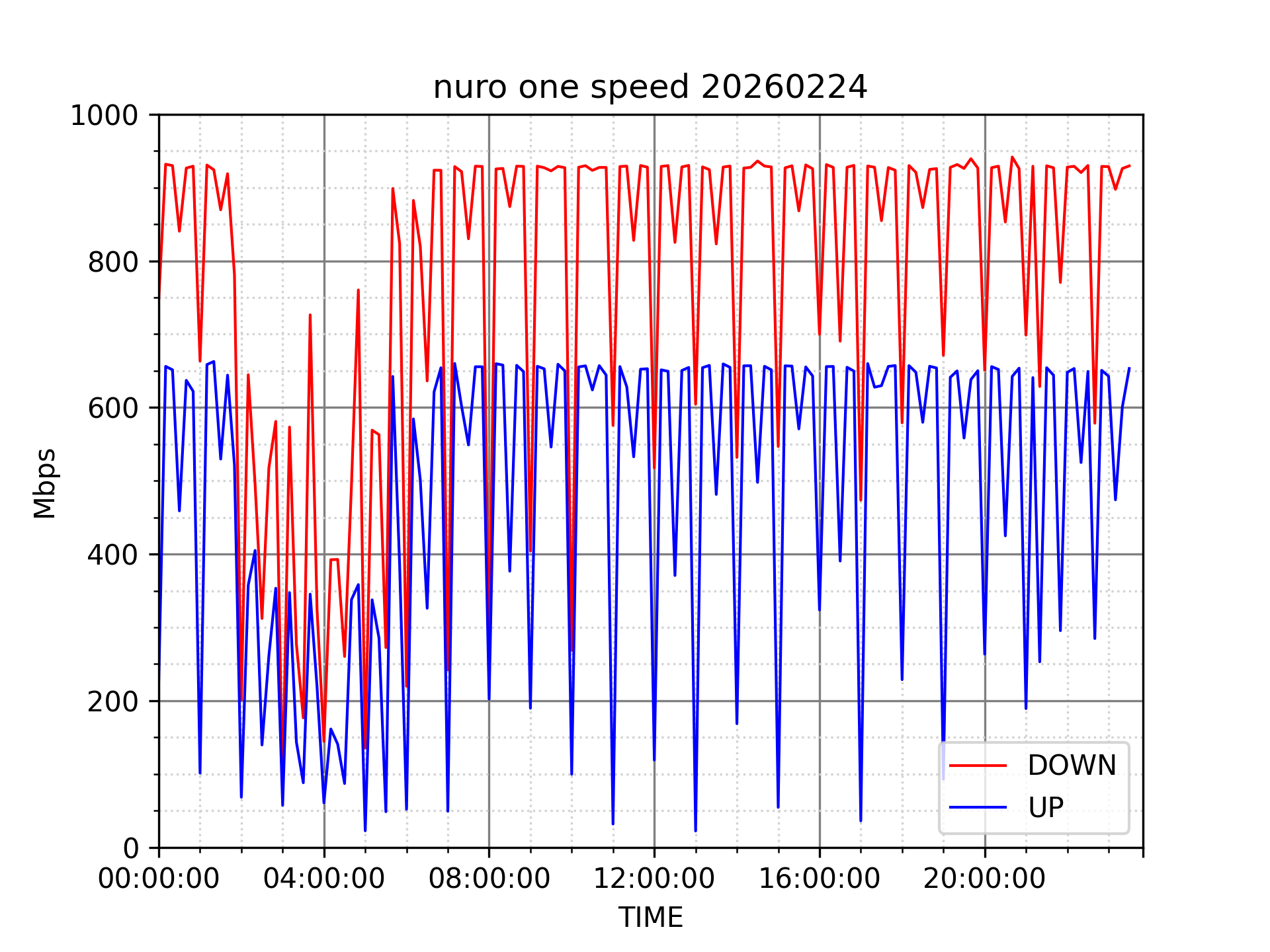 NURO ONEの速度の時間帯による変化を確認するため、プログラムを作って実際に細かく計測しています。