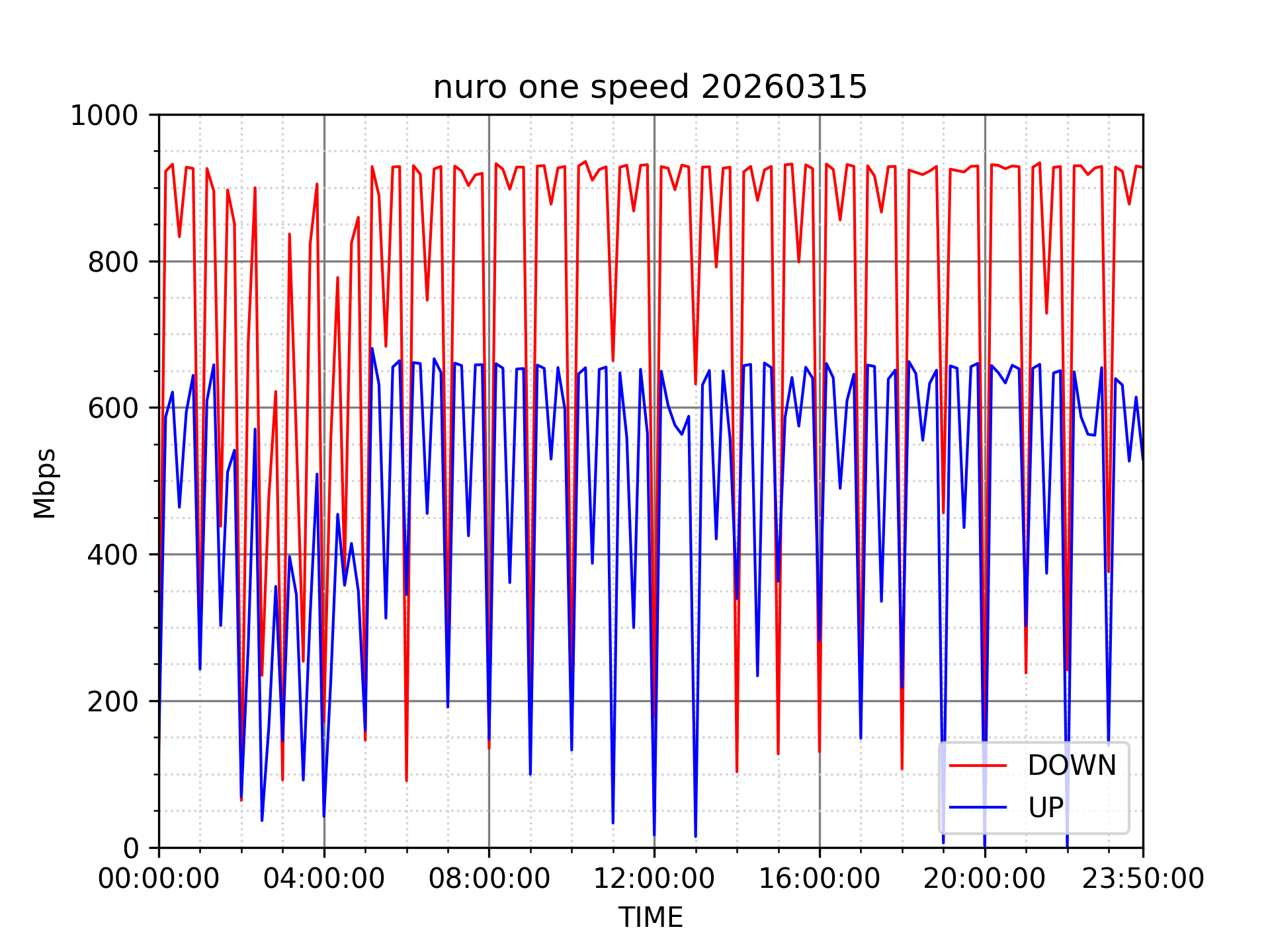 測定方法はSpeedtestのCUIコマンドをcronで10分毎に実行して計測しています。